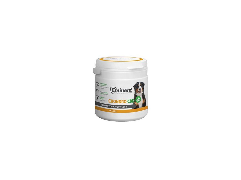 Eminent Chondro CBD je speciálně vytvořený výživový doplněk ve formě tablet, navržený tak, aby podporoval zdraví kloubních chrupavek vašeho psa, podporoval regeneraci buněk a zmírňoval zánět, který je často spojen s kloubními onemocněními.