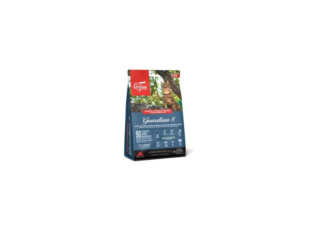 ORIJEN® Guardian 8 je výživné krmivo speciálně vytvořené tak, aby řešilo 8 nejčastějších onemocnění u koček a to za pomoci kvalitních surovin. Vzhledem k množství čerstvých a syrových živočišných ingrediencí v poměru celé kořisti, je v této stravě potřeba méně doplňků k podpoře zdraví vaší kočky po celý život.