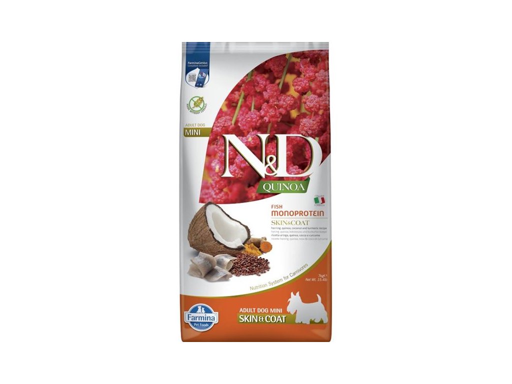 N&D QUINOA Dog GF Skin & Coat, Herring & Coconut Adult Mini 7 kg