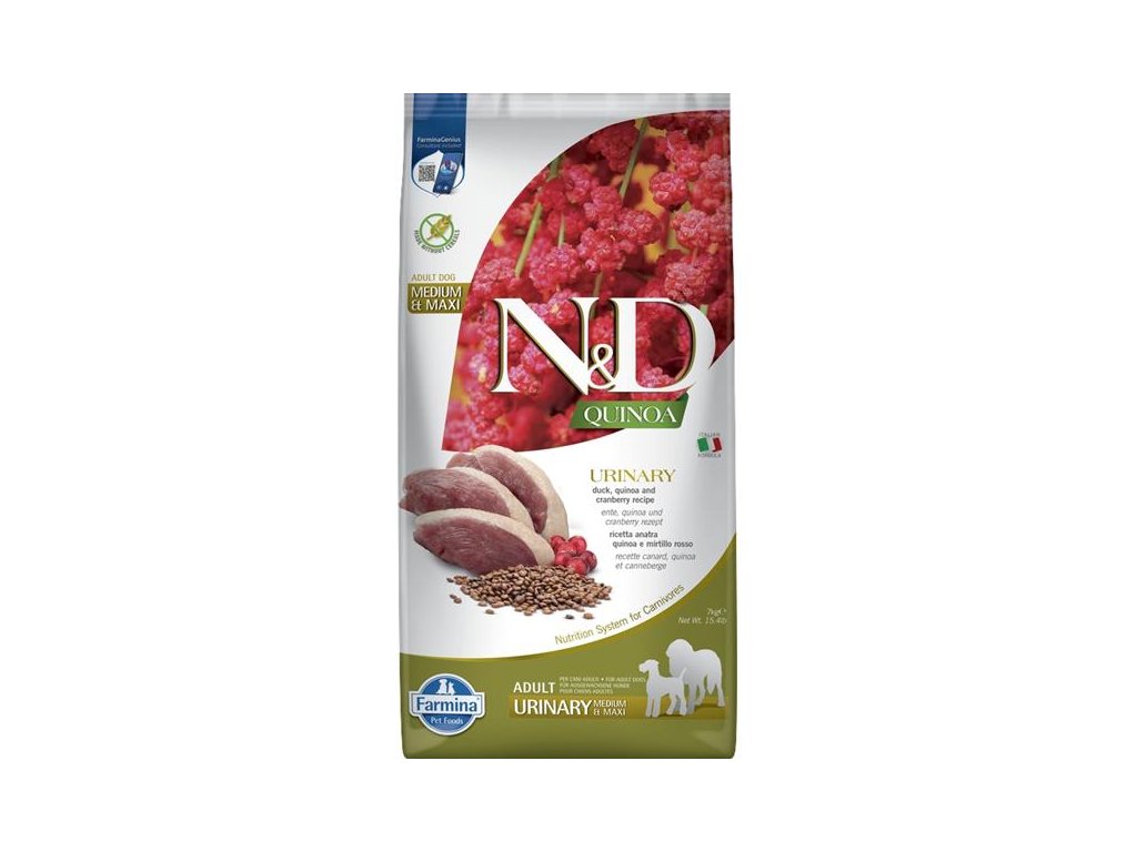 N&D QUINOA Dog GF Urinary, Duck & Cranberry Adult Medium & Maxi 7 kg