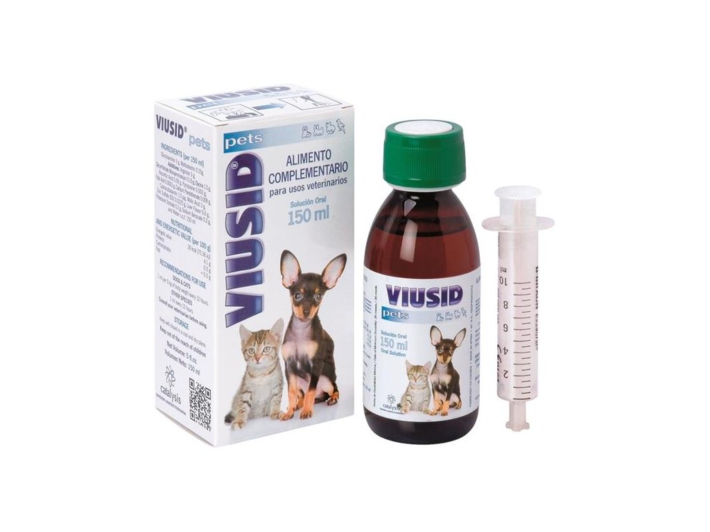 VIUSID pets je výživový preparát s obsahem antioxidantů, vitaminů, stopových prvků a extraktu z kořene lékořice (kyselina glycyrrhizinová), který má protivirový efekt. Je speciálně vyvinut pro posílení imunitního systému.