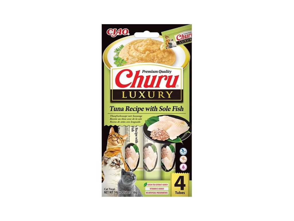 Inaba Churu Cat Luxury tuňák s mořským jazykem 4x 14g