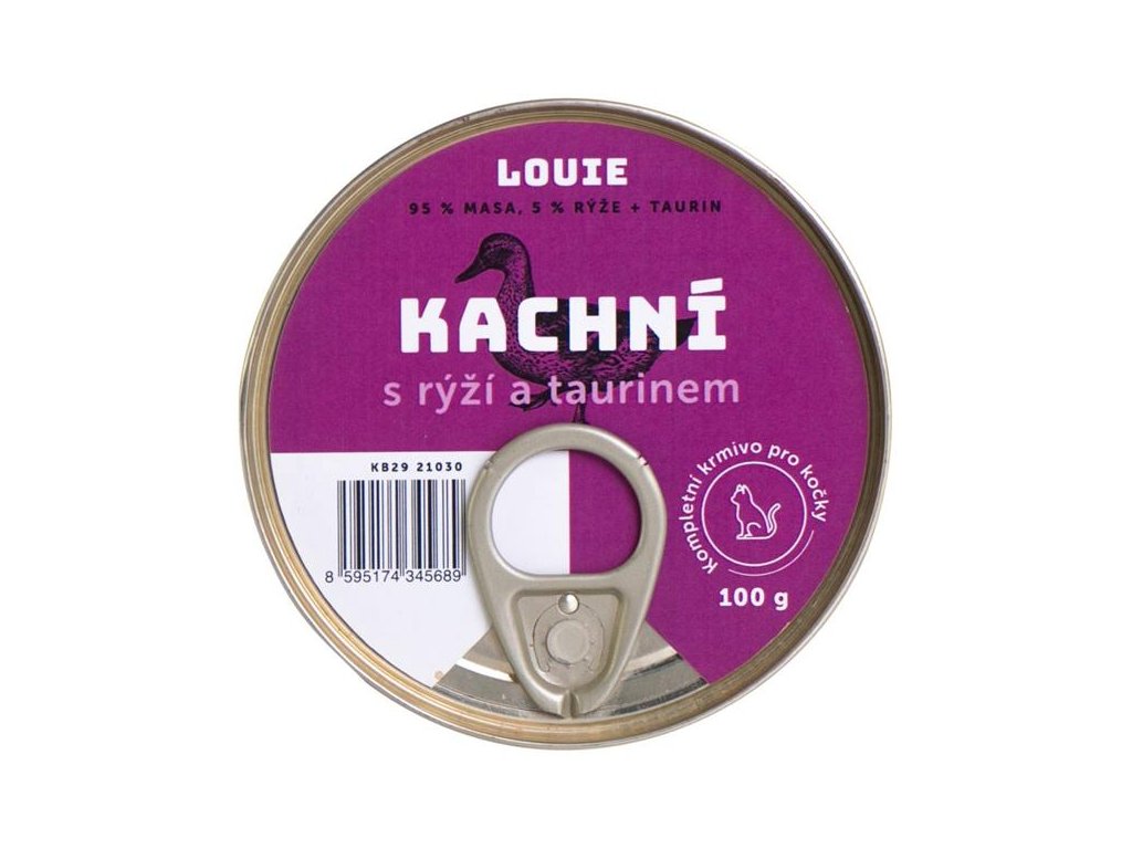 Louie konz. pro kočky kachní s rýží a taurin 100g