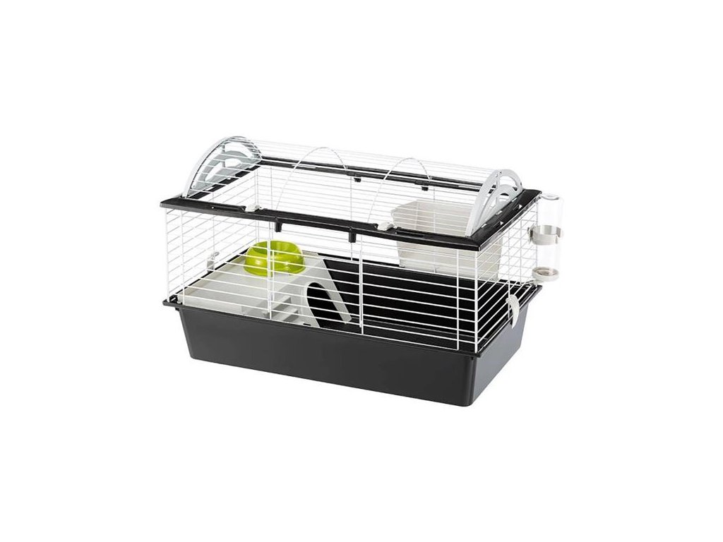 Kvalitní klec s vybavením vhodná pro morčata. Vyrobená v Evropě z kvalitního, netoxického plastu. Zajímavý design klece s obloukovou střechou, díky které je klec prostornější a dává zvířatům větší možnost pohybu. Celá střecha je otvíratelná, což usnadňuje čištění klece a manipulaci se zvířetem. Z boku klece jsou zasunovací dvířka. Komfortní klec jak pro zvířata, tak pro chovatele.