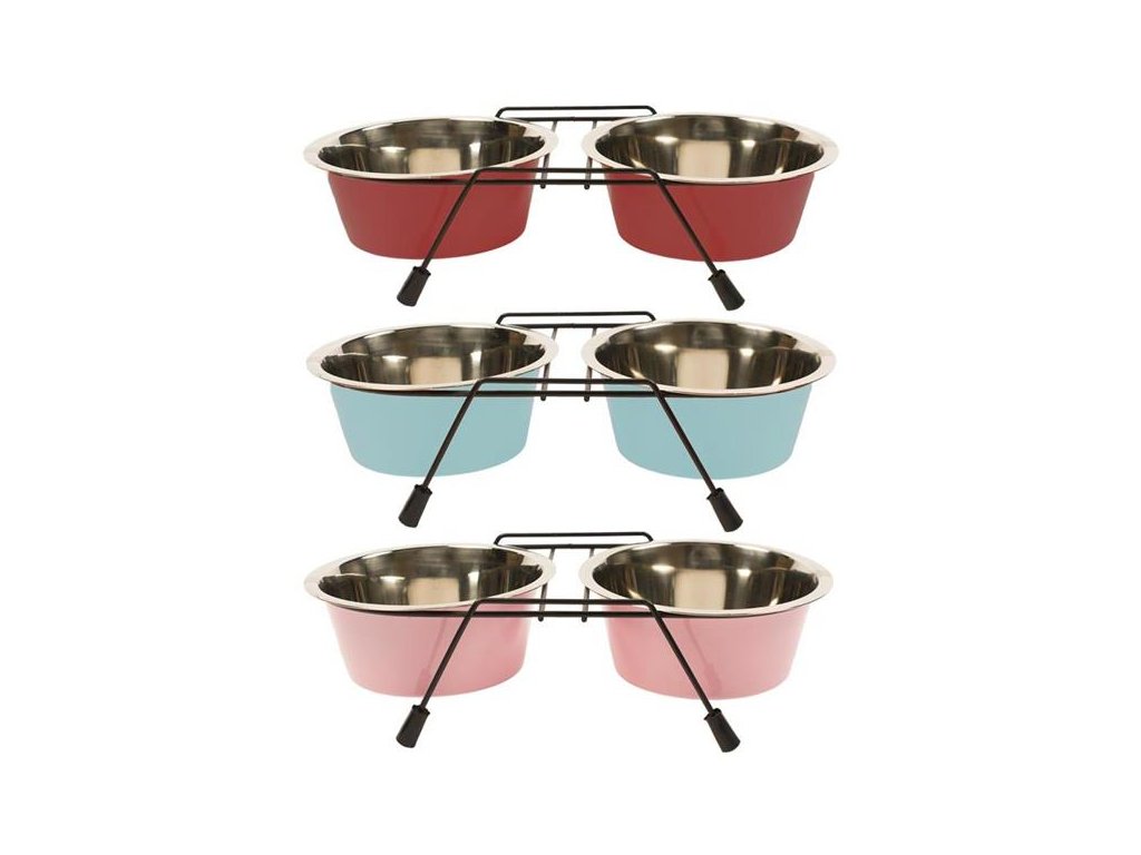 Dvojitá nerezová miska v praktickém stojánku.
