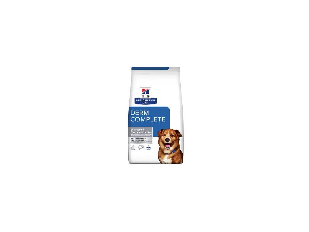 Hill's PRESCRIPTION DIET Derm Complete suché krmivo pro psy poskytuje veškerou výživu, kterou váš pes potřebuje, a proto může být podáváno dlouhodobě. Poraďte se se svým veterinářem, jak by krmiva z řady PRESCRIPTION DIET mohla pomoci vašemu psovi, aby si i nadále užíval šťastného a aktivního života. Toto suché krmivo je vyrobeno z lahodných ingrediencí a má neodolatelnou chuť, kterou psi milují.Jak funguje: