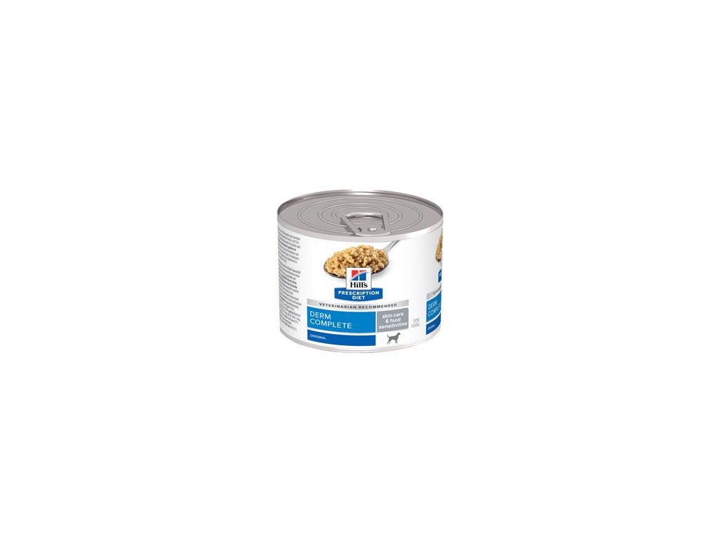 Hill's PRESCRIPTION DIET Derm Complete krmivo v konzervách poskytuje veškerou výživu, kterou váš pes potřebuje, a proto může být podáváno dlouhodobě. Poraďte se se svými veterinářem, poskytne vám další informace o tom, jak by Prescription Diet krmiva mohla vašemu psovi pomoci, aby si i nadále užíval šťastného a aktivního života. Toto mokré krmivo je vyrobeno z chutných přísad a má neodolatelnou chuť, kterou psi milují.