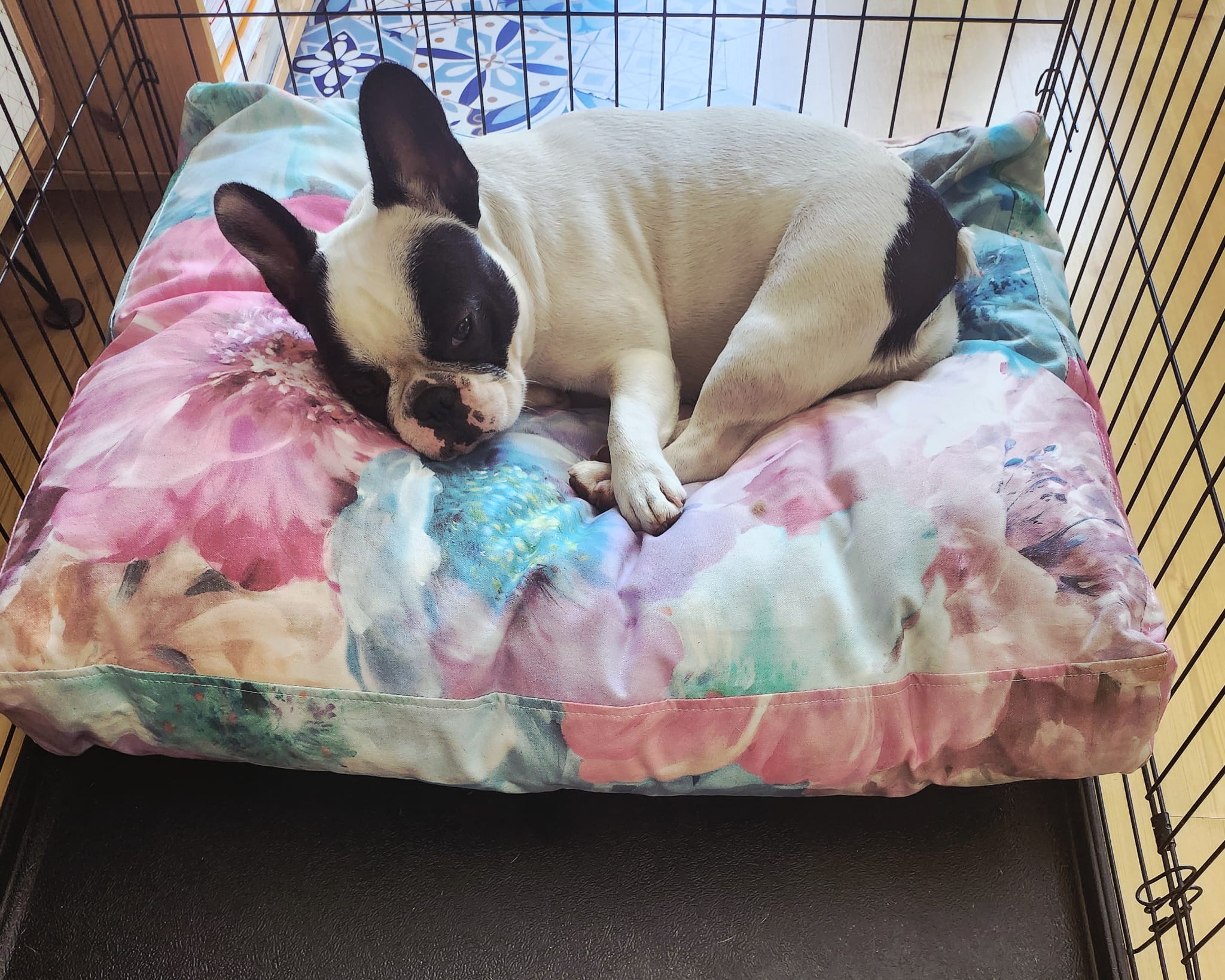 Ortopedický pelíšek pro psy květinová látka - růžová