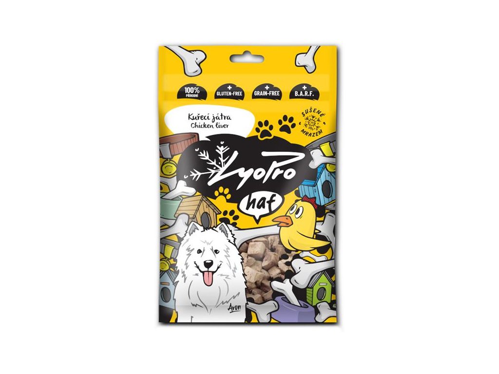 Křehká kuřecí játra si díky šetrnému sušení mrazem (lyofilizaci) zachovávají své aroma, strukturu i plnou chuť, kterou psi milují. Při lyofilizaci neprochází maso vysokými teplotami, a proto si uchová maximum vitamínů, minerálů a nutričně hodnotných látek. Jde o ideální volbu pro BARF (krmení syrovou stravou), psí alergiky a celiaky. Další výhodou sušení mrazem je dlouhá trvanlivost. Pamlsky se vyrábějí z poctivých kousků čerstvých kuřecích jater bez přidané chemie, obilnin, konzervantů a jiných balastních látek. Jde tak o zdravou, lehkou a výživnou odměnu.