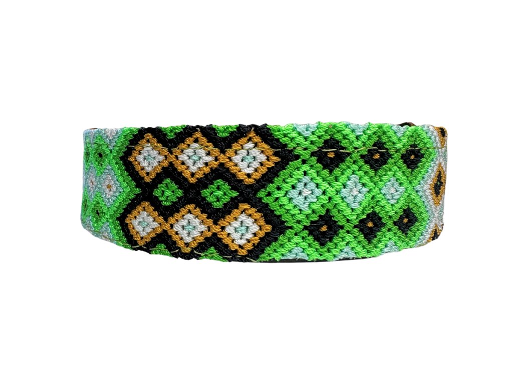 Obojky od AMOR Handmade jsou ručně vyráběny z přírodně činěné kůže a textilních materiálů, které jsou tkané tradičními mayskými technikami.