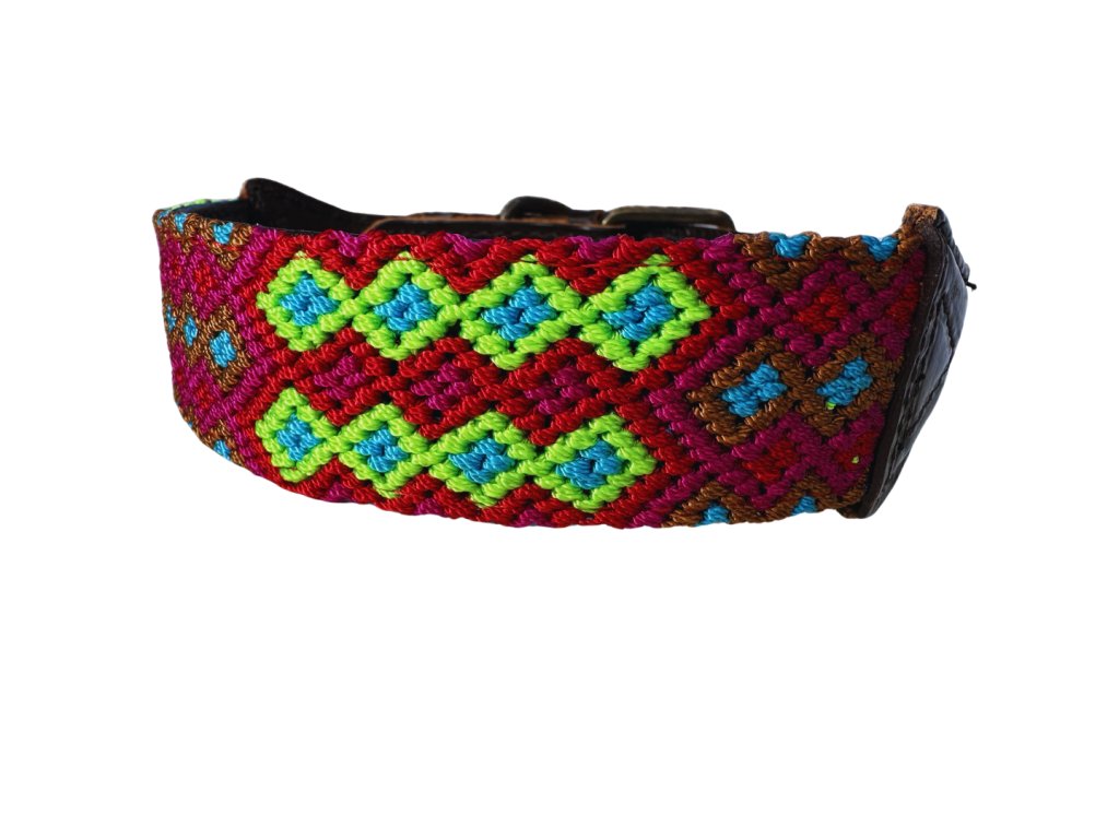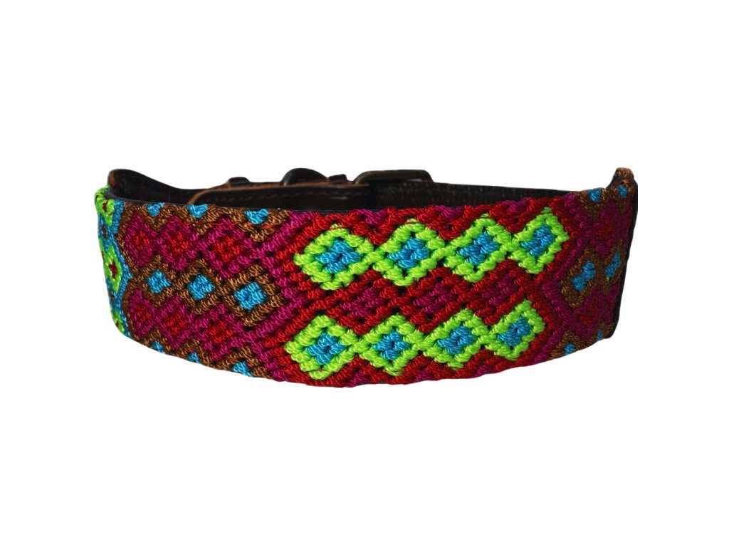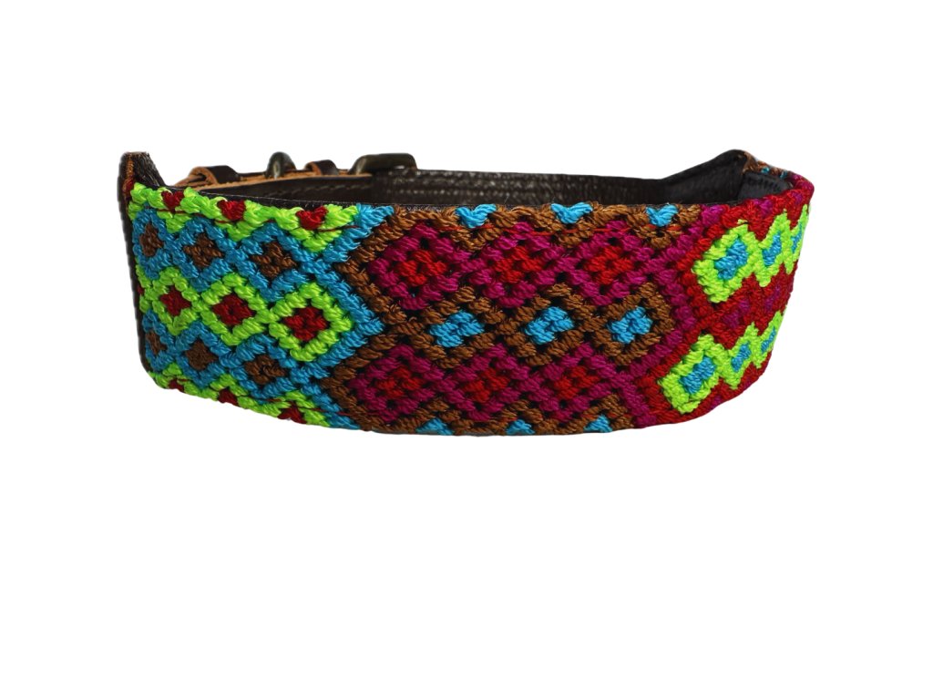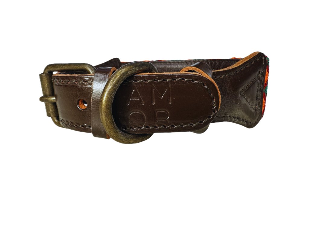 Obojky od AMOR Handmade jsou ručně vyráběny z přírodně činěné kůže a textilních materiálů, které jsou tkané tradičními mayskými technikami.