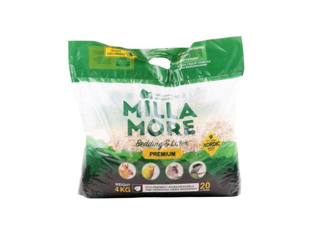 Pro podestýlání drobných savců a plazů lze kombinovat větší štěpky Premium s drobnějšími štěpkami Supersoft. Hnízdní hmota MillaMore poslouží zvířatům jako materiál pro stavbu hnízd, úkrytů i jako zábavný materiál na hraní.