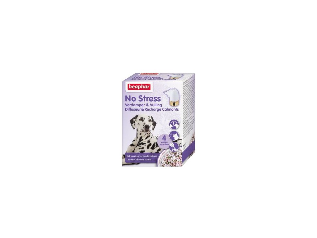 No Stress sada je šikovným řešením pro uklidnění vašeho psa. Elektrický difuzér rozšiřuje do prostoru přírodní výtažky z kozlíku lékařského a levandule, které jsou známé svým uklidňujícím účinkem.Jedna náplň (30 ml) snižuje stres a nežádoucí chování u psů všech věkových kategorií a plemen po dobu přibližně 4 týdnů.