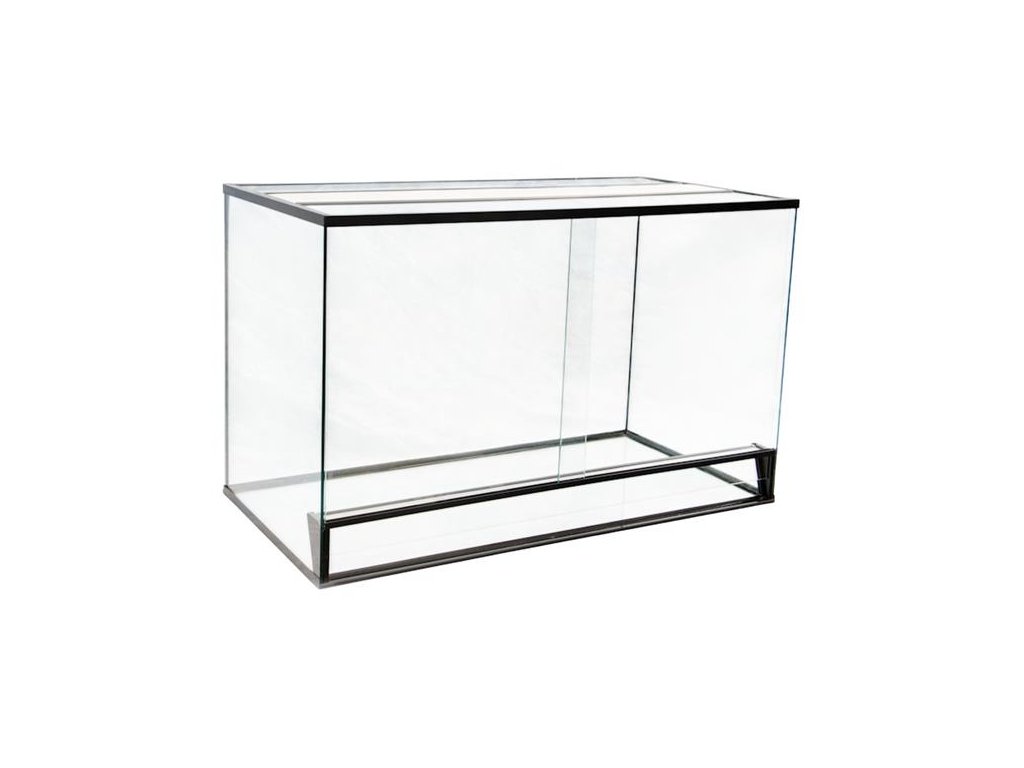 Celoskleněné terárium o rozměrech 50 x 35 x 35 cm.