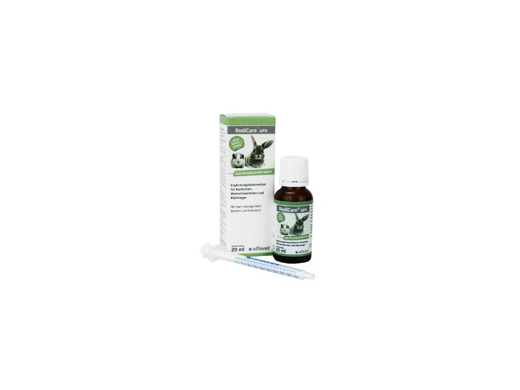 Doplněk výživy pro králíky a morčata s extrakty bylin a bobulí stimulujícími produkci moči. RodiCare Uro doplňuje výživu chudou na byliny o potřebné sekundární rostlinné látky. Jehlice trnitá, celík zlatobýl, kopřiva a přeslička přirozeným způsobem podporují tvorbu moči. Brusinky, černý rybíz a list břízy doplňují výživu o užitečné sekundární rostlinné látky. Glukosamin a vitamín A jsou potřebné pro fyziologické funkce sliznice močového měchýře.Složení: Brusinkový extrakt 15 %, extrakt z černého rybízu 15 %, extrakt z březového listu 12, 5 % a extrakt jehlice.