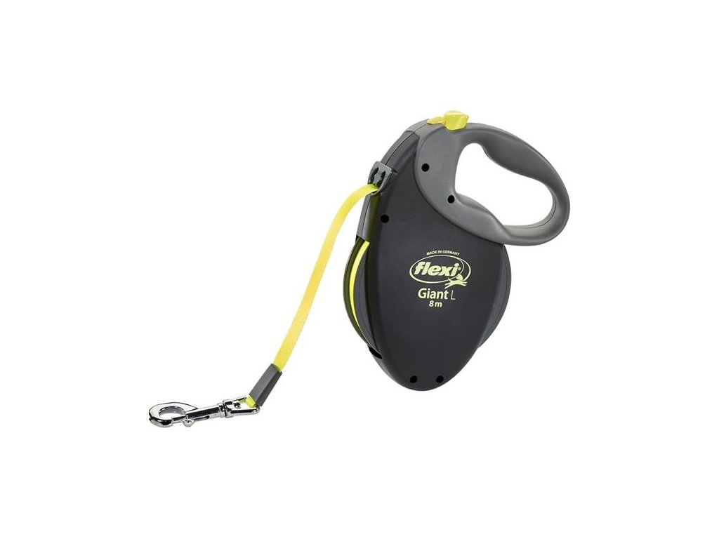 Něco mimořádného pro velké psy. Robustní vodítko Giant je snadno ovladatelné a měkká rukojeť se krásně drží. Neonový barevný pásek zajišťuje lepší viditelnost i z velké dálky. Vyzkoušený a osvědčený mechanismus v masivním pouzdře zastaví pouhým stisknutím tlačítka i nejsilnější pohyb vpřed. Vodítko prochází před expedicí mnoha kontrolami kvality.